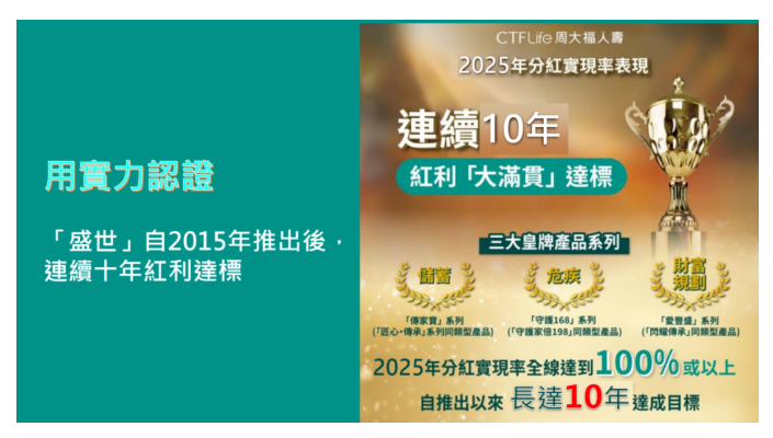 周大福人寿宣称连续10年红利达标,2025年分红实现率全线达100%或以上。虽然历史表现不代表未来,但至少给人一点信心。